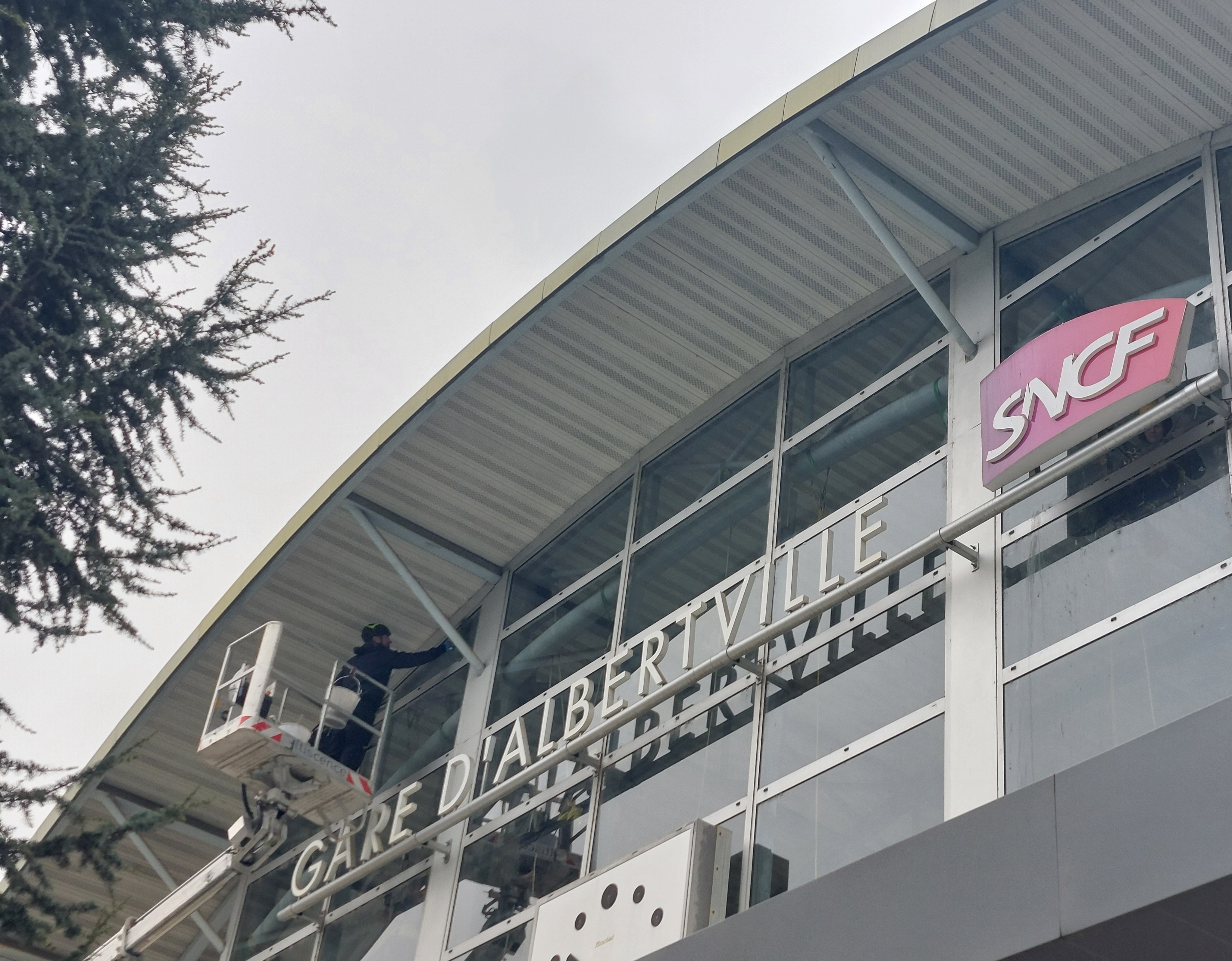 - Nettoyage lettre par lettre de l’enseigne de la gare